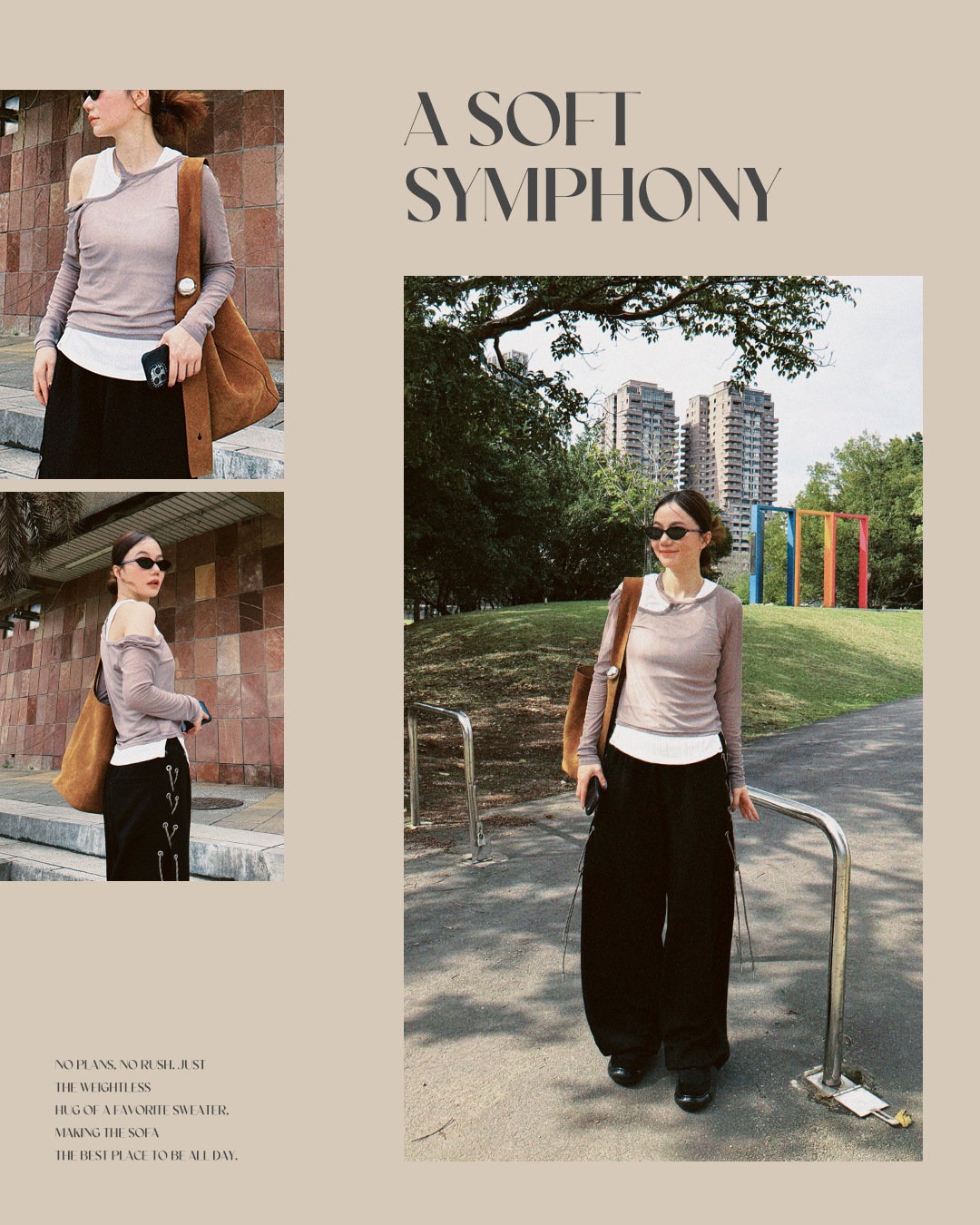 搭配素面棉褲整體風格在休閒與設計感之間維持恰到好處的平衡。