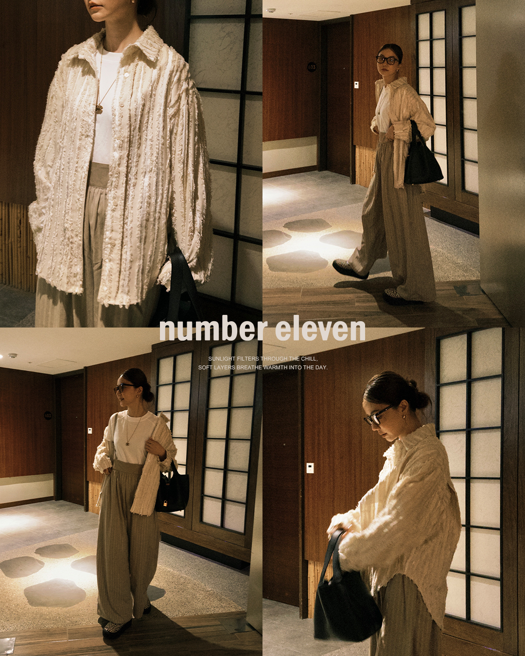 外層疊加上本期寬版立體鬚邊設計襯衫外套,增添層次與休閒氛圍,透過設計感單品讓整套搭配簡約又不無趣,時髦感十足!