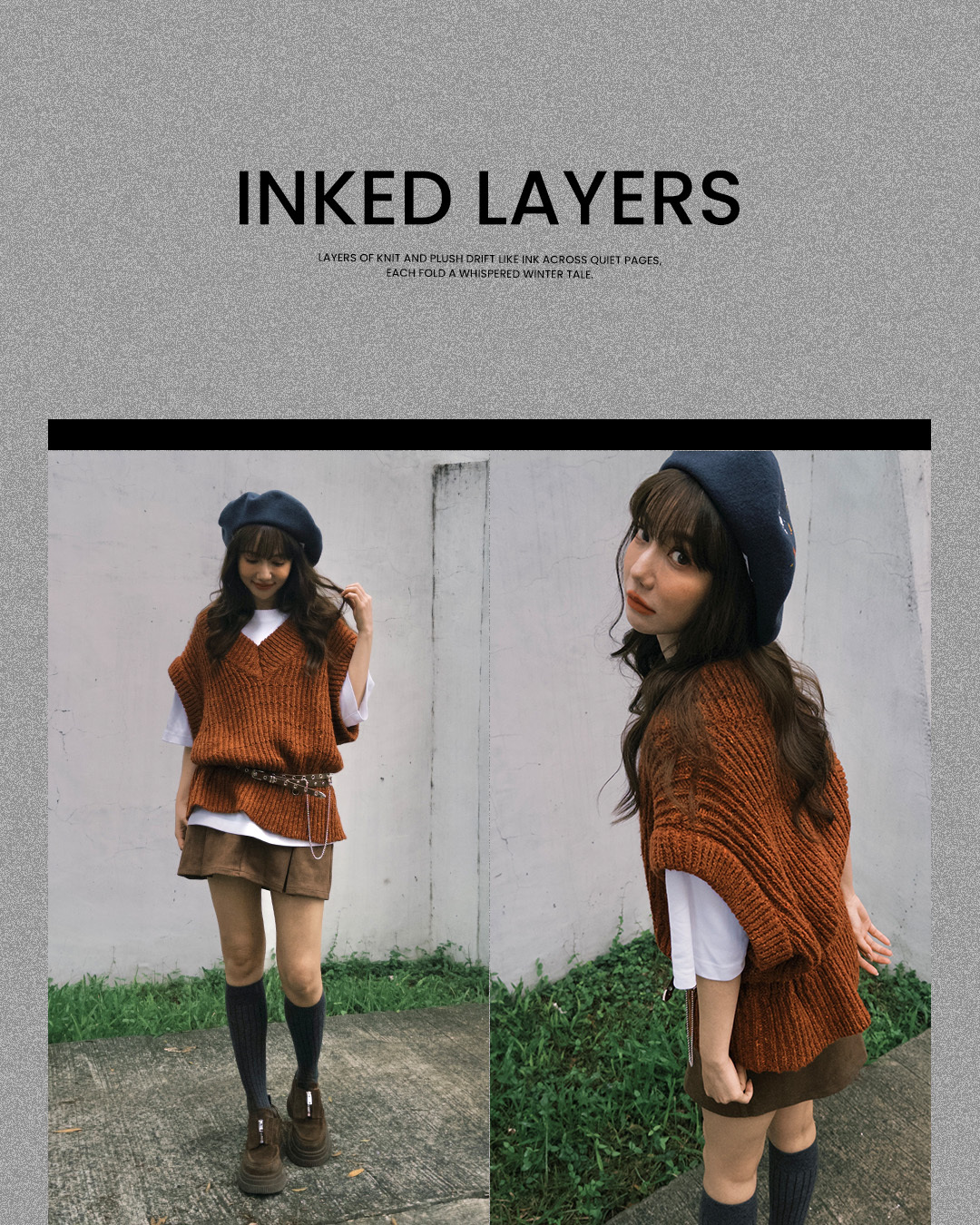 運用厚底鞋與腰帶修飾比例,再加上貝雷帽,讓整體更有造型感,呈現文青又帶點個性的秋冬穿搭。