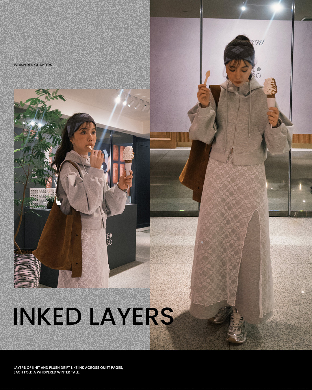 搭配球鞋,兼具舒適與休閒感,整體穿搭呈現秋冬輕鬆日常感,同時保有設計巧思與細節亮點。